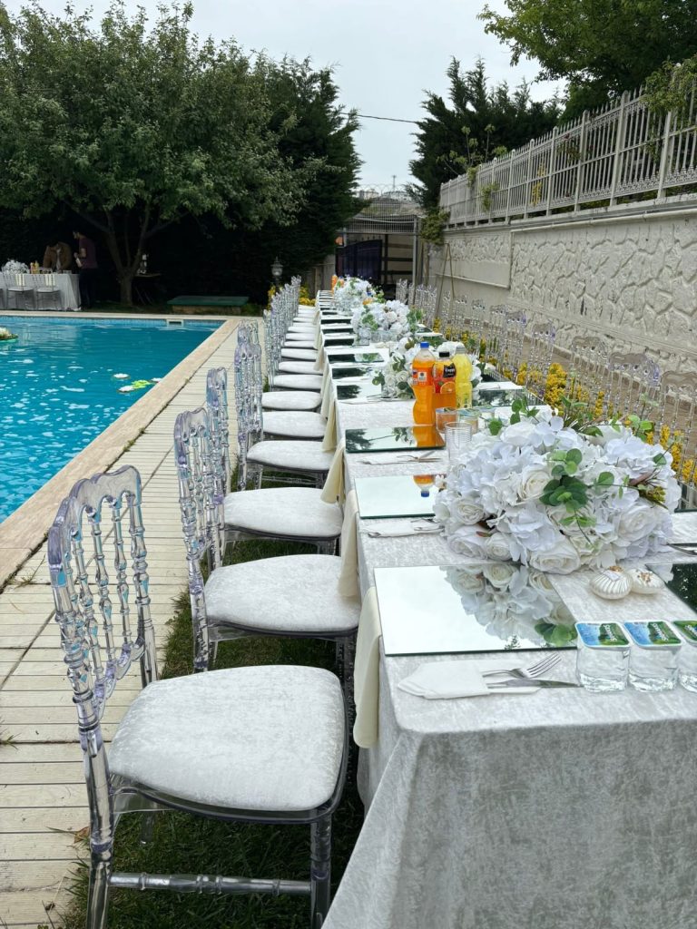 İstanbul’un kalbi Şişli’de düzenleyeceğiniz her türlü organizasyonun temel unsurlarından biri, doğru masa ve sandalye seçimiyle başlar. İster düğün, ister kurumsal toplantı, ister açılış kokteyli ya da seminer organizasyonu olsun; konuklarınızın rahatlığı ve organizasyonun estetik görünümü için masa sandalye tercihi çok önemlidir.