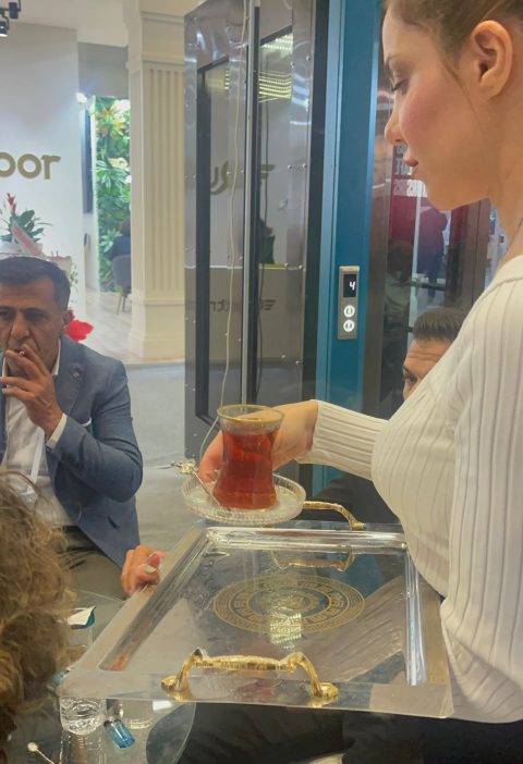İkram alanı kurulumu, çay/kahve servisi, hediyelik sunum masası