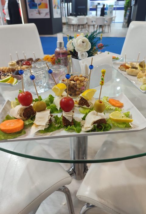 Girişte karşılama hostesi, hafif ikramlar, bistro masalar, mini kokteyl bardakları…