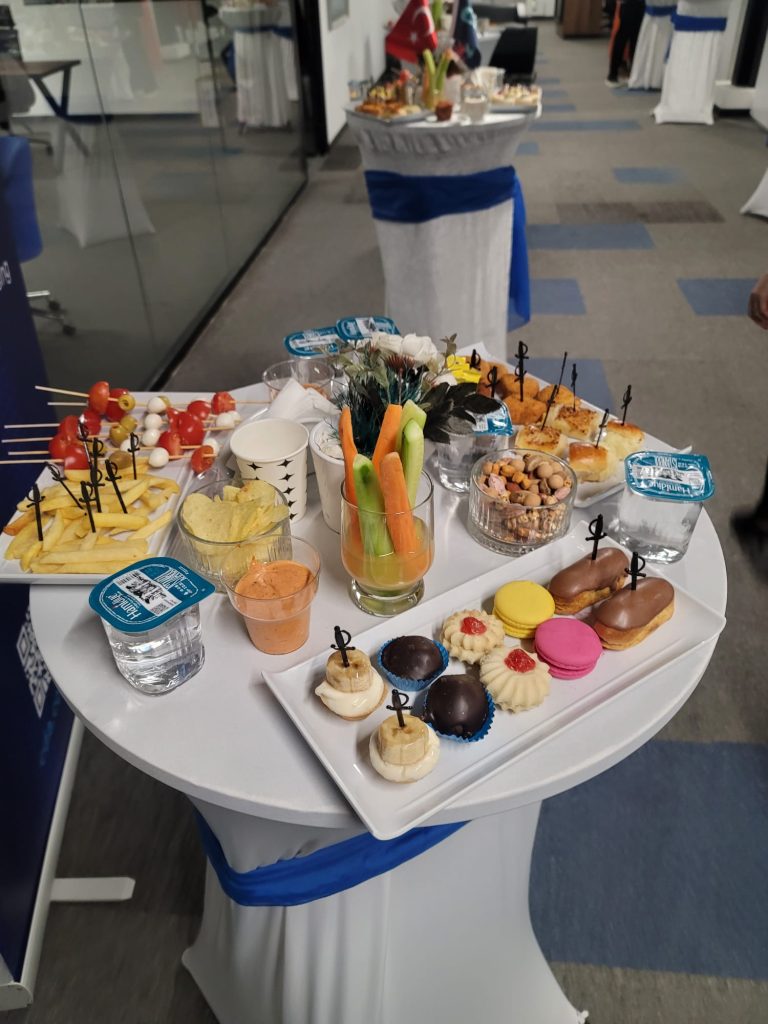 İkramlarTuzlu kanepe, makaron, magnolia, kalem böreği, ekler, cips, çerez