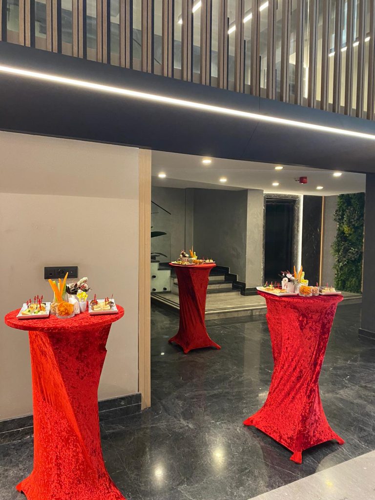 • Kokteyl düzeninde bistro masa ve şık sunum ekipmanları