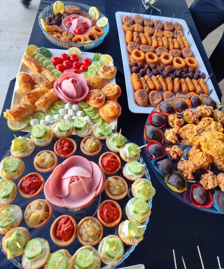 | Paket 1 – 50 Kişilik Kokteyl | Tatlı-tuzlu kanepe, mini sandviç, meyve şişleri, bistro masa kurulumu, cam & porselen sunum, 1 garson | 24.900 TL |