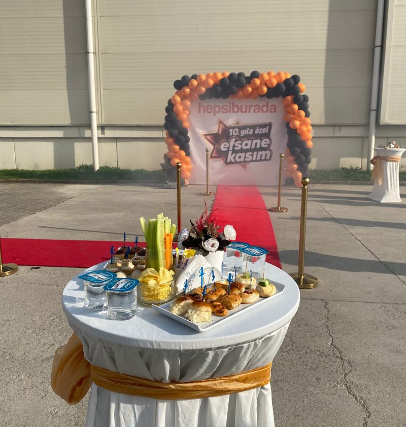 | Çıkış Saati Kokteyli | 50 kişilik organizasyon, 6 kokteyl masası, 10 çeşit ikram, içecek standı, 2 garson, cam sunum takımı, fon müziği | 24.900 TL |