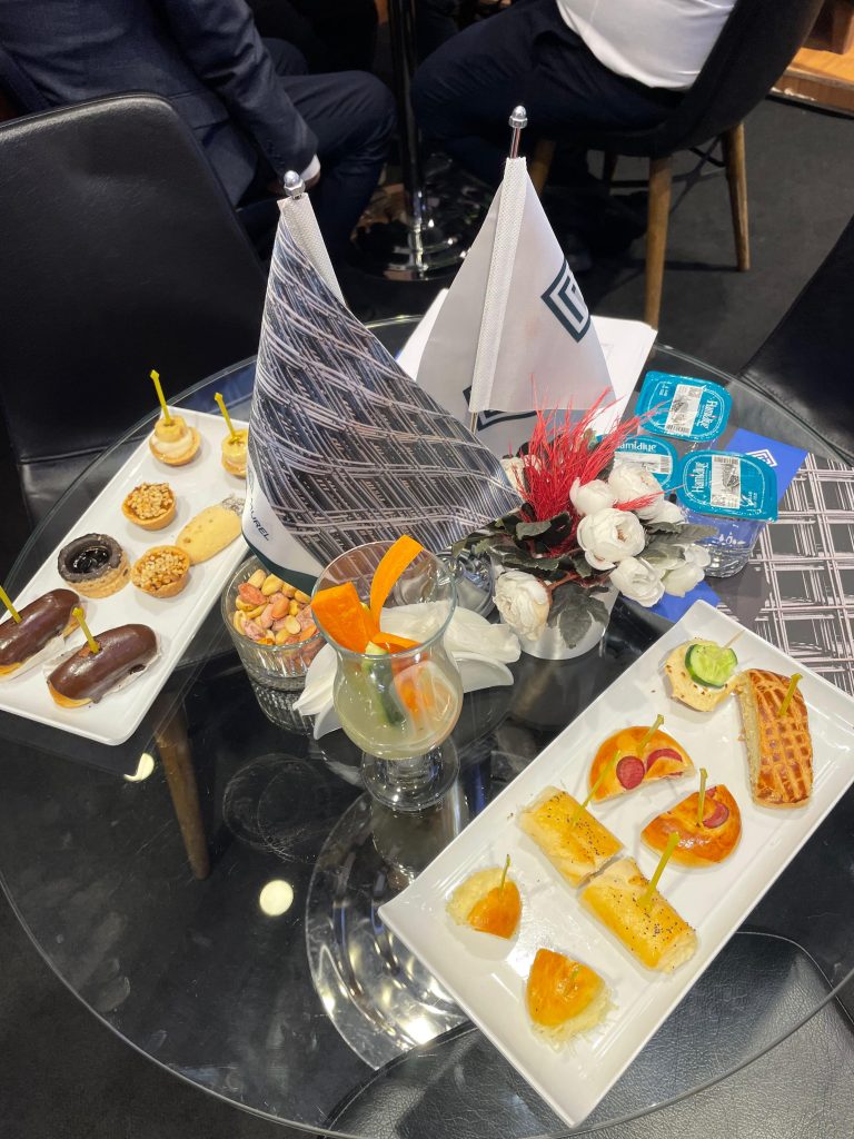 - Fuar catering çözümleri: Tatlı-tuzlu ikramlar, içecek servisi, cam/porselen sunum