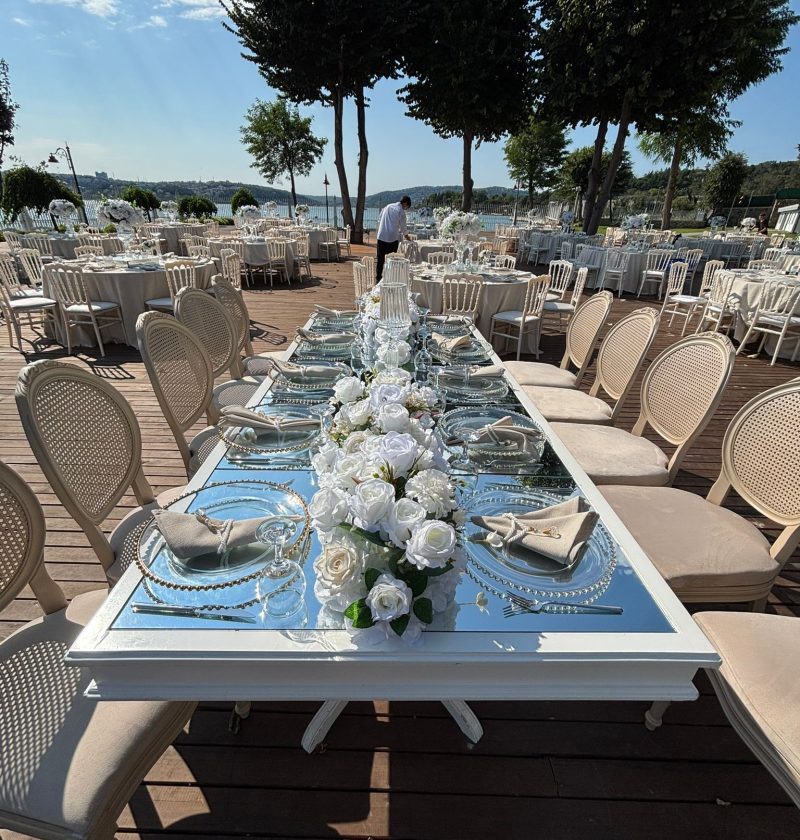 Dekorun fotoğrafta iyi görünmesi kolaydır; yakından bakınca kalitesi ortaya çıkar. Kumaş, ışık, masa üstü detaylar, çiçek yoğunluğu… Doğru firma malzeme ve kurulum standardını sahada korur.