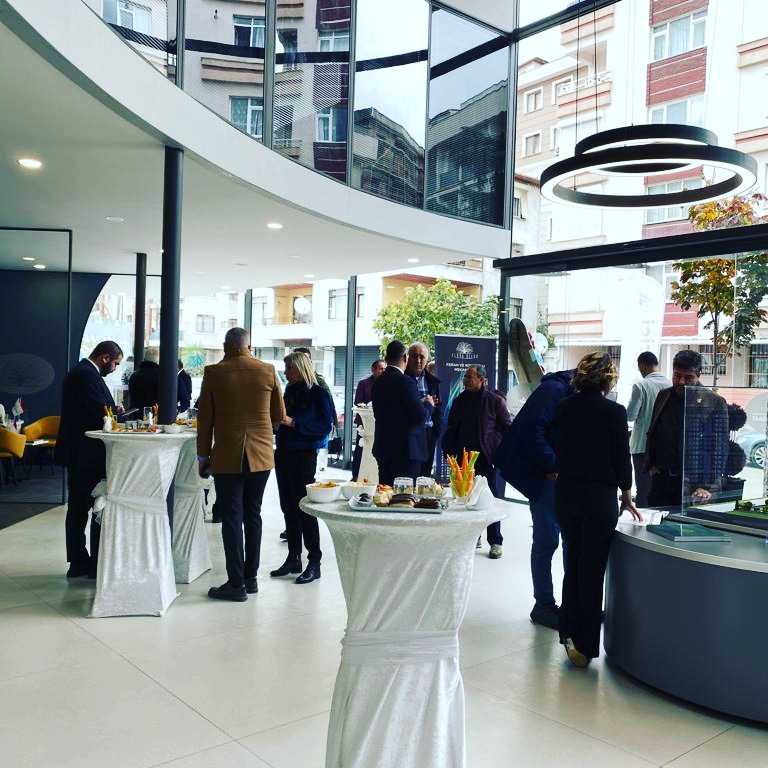 - Düzenli görünüm: kokteyl masalarıyla alan toparlanır, sunum daha kurumsal durur. 🏢✅